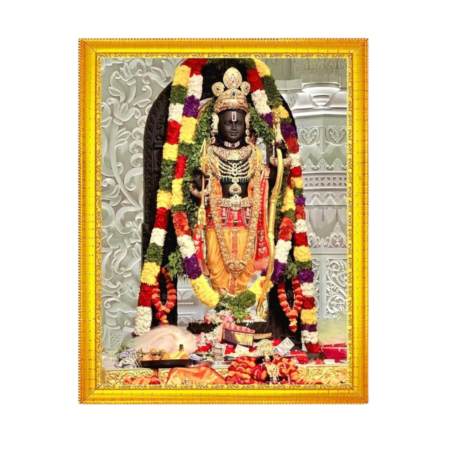Bring home divine blessings with this elegant Golden Frame of Shri Ram Lalla. Featuring the sacred idol from Ayodhya, the picture includes rich garlands, ornaments, and temple detailing that radiates devotion and peace.
